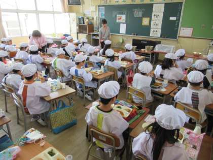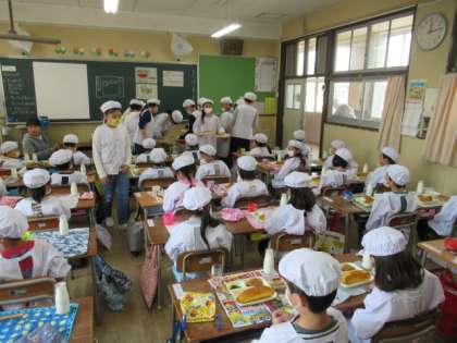 2年生以上は12時30分から準備を始めるところを、約30分早めて給食にしました。