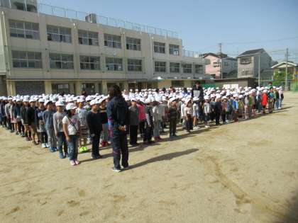きちんと整列し、素晴らしい態度で朝会の話を聞いていました。