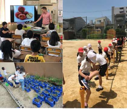 体育も通常通り行うことができ、2年生は雨の翌日にも関わらず、子どもたちは自分の植えた野菜の様子を見に来ていました。