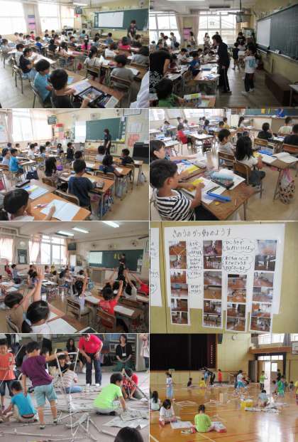 2年生は、算数のひき算の計算を、3年生は図工でクミクミックス(新聞紙を組み合わせて立体を作る)。