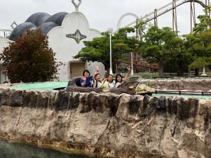 雨が降る中、アトラクションを楽しんでいました。