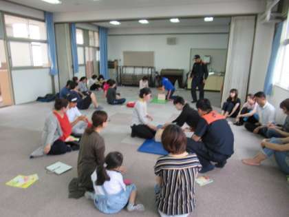 住之江消防署の方に具体的な場面でこのケースではどうすれば?というような熱心な質問が多数あり、人形を使った練習にも熱がこもっていました。