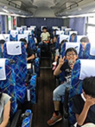 少し渋滞してますが、さっそくバスで盛り上がってます!