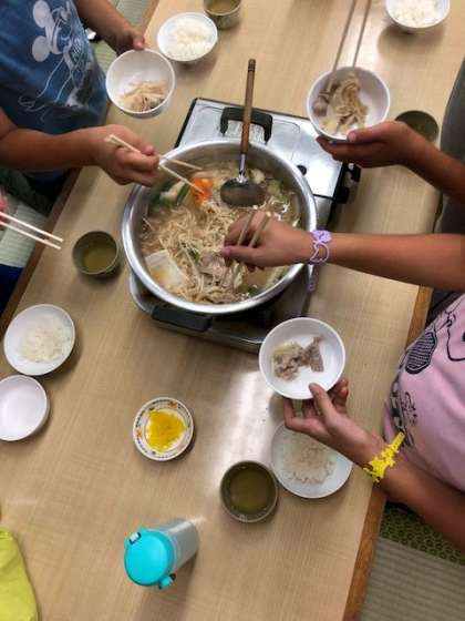 今日は、高原と言えども暑くなりましたが、体調をくずす子もなく、元気に鍋をつついています。