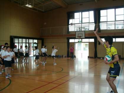 6月27日(木)、6年生が「トップアスリート小学校ふれあい事業」のひとつ、バレーボールチーム『堺ブレイザーズ』との交流授業をおこないました。