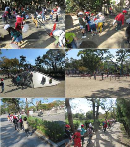 どんぐり・松ぼっくり・落ち葉を探しに行きました。