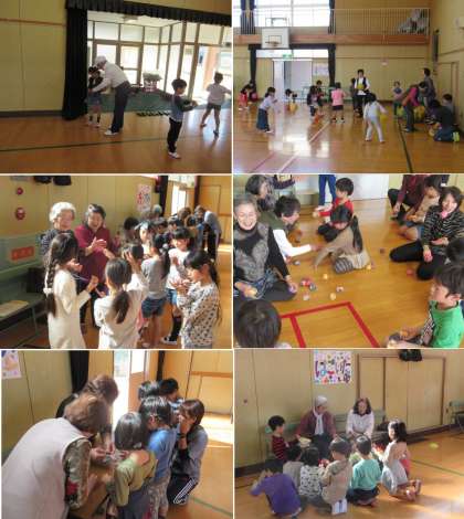 地域の方に来ていただいて、昔の遊びを教えてもらう活動です。