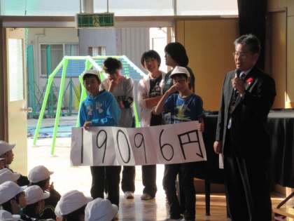 そして、児童集会の最後に、赤い羽根募金の募金額の発表がありました。