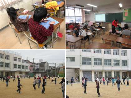 子どもたちのこの前紹介したなわとびカードと縄をもって運動場に来て、なわとびをしていました。