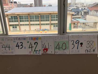 廊下には、残りの日数を有意義にするため、子どもたちが作ったカウントダウンの掲示が貼られています。
