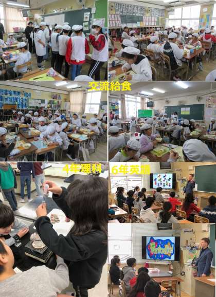 交流給食は、1年と6年、2年と5年、3年と4年が半分ずつ入れ替わって給食を食べる会です。