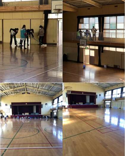 練習のため講堂に入った子どもたちも見違えるほどきれいになった床にすがすがしい気持ちになり、練習にも一段と熱が入りました。