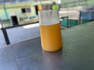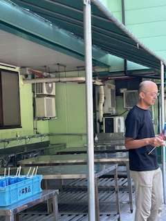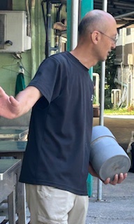 アサヒロッジさんお手製のシャーベット製造器に、氷と塩を交互に入れて作ります