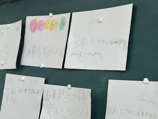 運動会に向けて、グループの合い言葉を考えて、発表していました