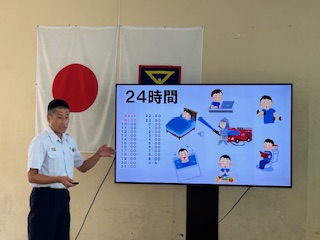 消防士さんの24時間の動きを聞いたり、お風呂から出て30秒以内には着替え終わっているという話を聞いたり、出動まで50秒くらいでできるという動画をみたりしました