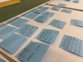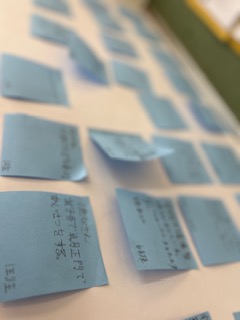 お話を聞いた中で、気づいたことをふせんに書いてまとめています
