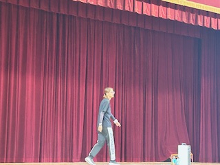 音楽に合わせて、ステップを踏みます