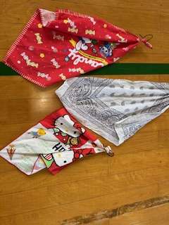 手首にハンカチを巻きつけて、団体演技の練習をしていました