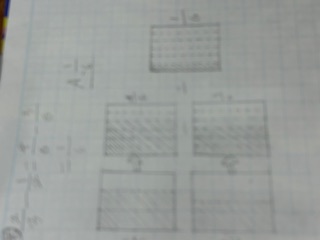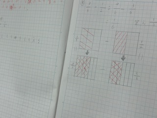 分母が違う分数の引き算の仕方を、図を使って考えていました