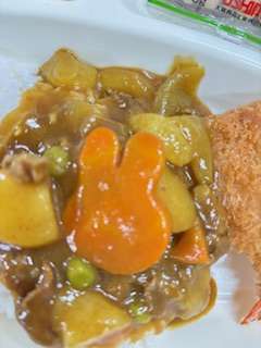 今日も給食調理員さんがラッキーにんじんを用意してくださいました。「うさき」、「くま」、そして新登場の「ひよこ」の形をしたにんじんに、喜ぶ姿が見られました。