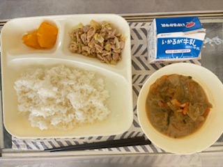 いわしのつみれ汁…いわしだんごとだいこん、ごぼう、にんじん、青ねぎなどが入った汁ものです。いわしだんごは、骨や歯をじょうぶにするカルシウムが含まれています。