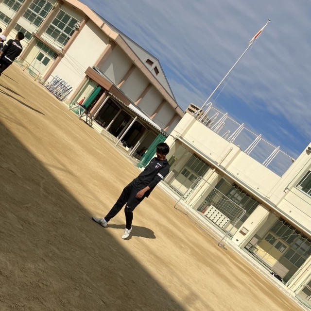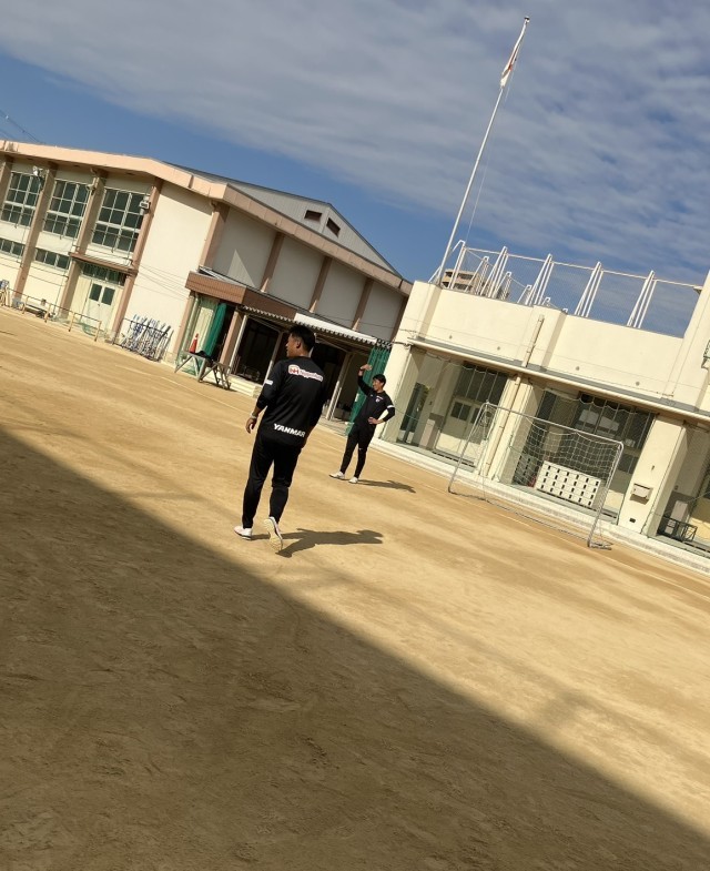 ドリブルをして、コーンの裏の穴にいれる、バスケットのような動きをして、次は同じことを足でやりました。コーンにあたって、チームで大はしゃぎです!