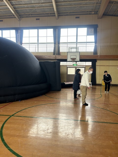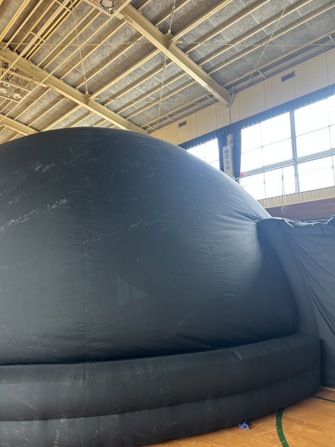 今日は、移動式プラネタリウムを学校の講堂にお呼びして星座の学習をしました