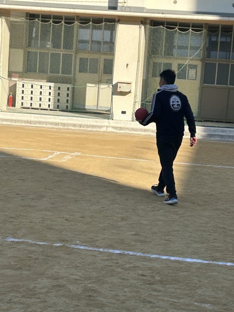 しっかり準備運動をした後、ポートボールの試合をしました。先生が開始のブザーを鳴らすと、チームのみんなで声をかけ合っていました。高く投げるボール、受けやすく投げるボール、遠くまで届くように投げるボール……投げ方を工夫しながら、取り組みました。