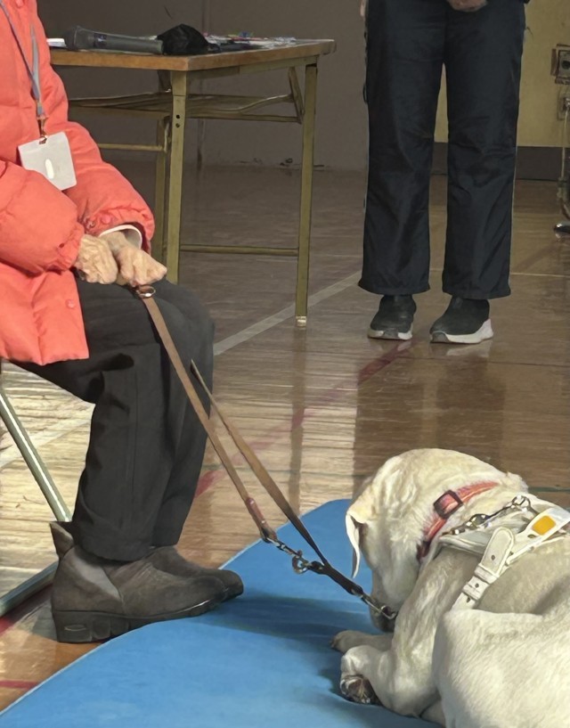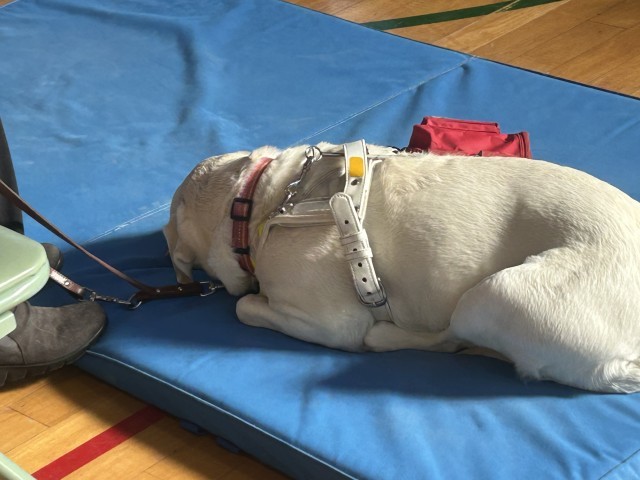 盲導犬と一緒にゲストティーチャーが、本校に来てくださいました。