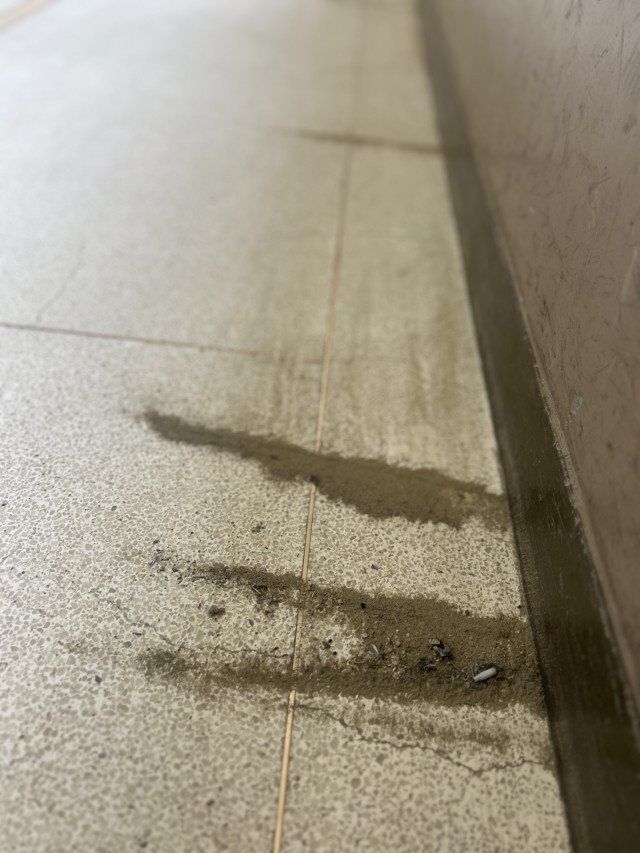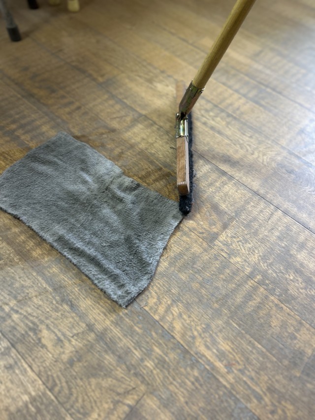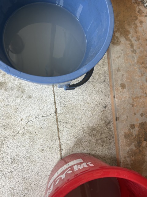 ほうきではいたり、ぞうきんでふいたり…。バケツの水も真っ黒。集めた砂やゴミはちりとりにいっぱいになります。