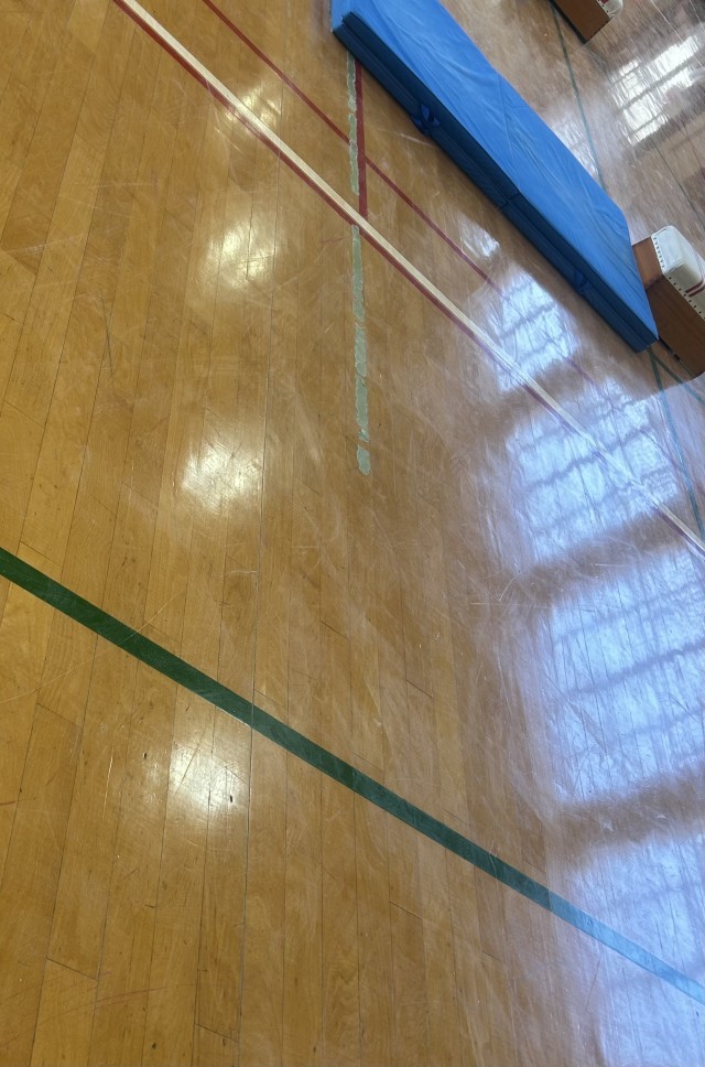 跳び箱で跳ぶ前に、マットで動きのポイントを練習していました。手のつき方や足の動きを確認した後、跳び箱を用意して取り組みました。