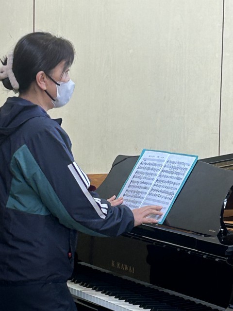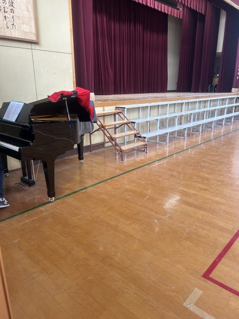 音楽室で歌うのと雰囲気は違い響きが広がります。