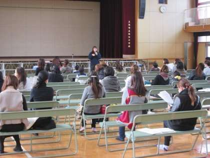 現1年生の担任や係から、学校生活に必要な用具や心得などについてお知らせしました。