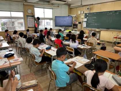 5月31日(水)1時間目、3年1組は外国語活動で英語のあいさつの仕方を学習していました。先生が英語で授業を進めていたので、近くにいた子どもに、「先生、すごいね。」と思わず声をかけてしまいました。