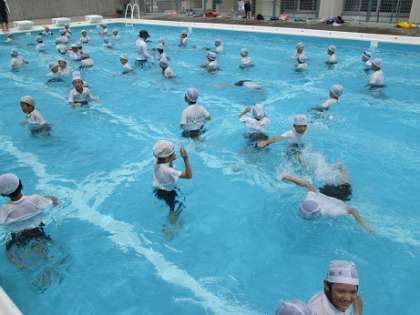 先週の木・金曜日、水泳が苦手な子どもたちを対象にした水泳教室がありました。