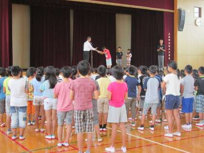 始業式は、転入生の紹介、学校長の話に続き、児童水泳記録会に参加した児童の表彰などがありました。