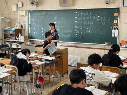 9月30日(月)2時間目、5年1組は算数で分数の計算をしていました。