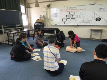 本日、安立ホール(多目的室)にて「救急救命研修会」を行いました。6月18日(火)から始まるプール水泳の学習に備えて、毎年行っている研修会です。住之江消防署からお借りした人形や(練習用)AEDを使って、「心臓マッサージ」や「人工呼吸」「AEDの使い方」の実技を研修しました。今年のプール水泳も、安全に気をつけて行います。