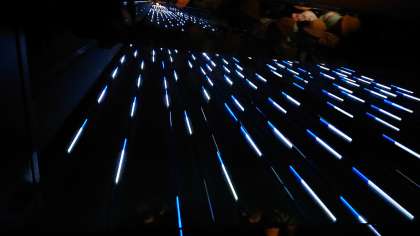 展望台に上るエスカレーターで大はしゃぎ。