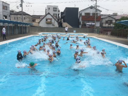 久しぶりのプールで、水しぶきをあげながら、友だちと仲良く取り組むことができました。