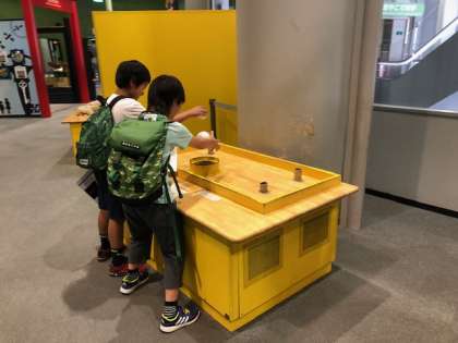 その後、展示場に行きました。宇宙、プラスチックや金属など物質の化学、電気とエネルギーなど、たくさんの科学に触れることができました。ルールを守って楽しく活動することができました。