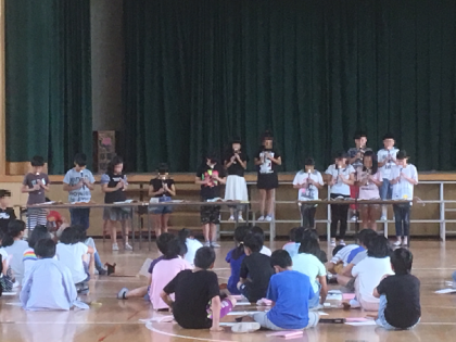 演奏後のインタビューでは、たくさんの聞き手の子どもたちが、発見した友だちのがんばりをしっかりと発表しました。このような音楽を通した子どもたちの交流が、大変すばらしかったです