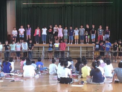 昨日、音楽科の学習活動として、講堂にて「音楽コンサート」を行いました。5年生の子どもたちが、日頃の音楽の学習の成果をしっかりと発揮して発表しました。発表内容も盛りだくさんで、リコーダー演奏や合唱などがあり、いろいろな音楽を楽しむことができました。また、司会や代表の言葉なども、子どもたちでしっかりと取り組むことができました。