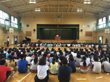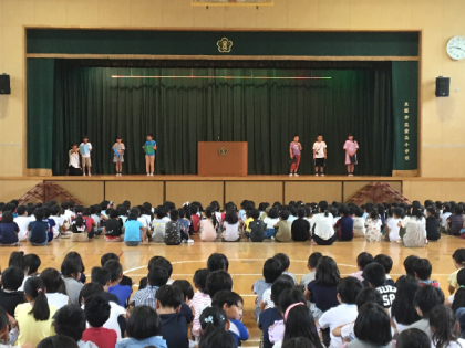 本日、1学期終業式を行いました。小田原先生の指揮のもとで、みんなで校歌を歌った後、校長先生のお話を聞きました。1学期にがんばったことや楽しかったことなどを、みんなでふり返りました。そして、原田先生から夏休みの過ごし方についてのお話を聞いた後、児童会により2年生と4年生の代表の友だちが、今学期にがんばったことや楽しかったことを発表しました。春の遠足、安立ワイワイまつり、プール水泳、クラブ、学習のことなど色々な内容があり、すばらしかったです!その後、各クラスにて、1学期のまとめをしました。