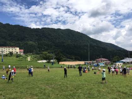 ドッチビーやラグビーボールなどで遊んだり、草むらで虫とりをしたりしました。