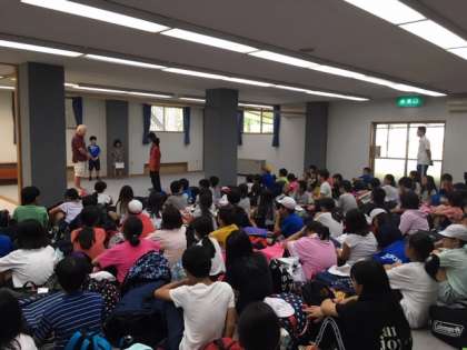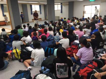 12時25分、いよいよ、自然体験学校の閉校式を迎えました。児童代表が宿舎の方にご挨拶をし、みんなで感謝の気持ちを伝えました。そのあと、宿舎の方から、お話をしていただきました。