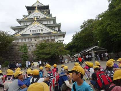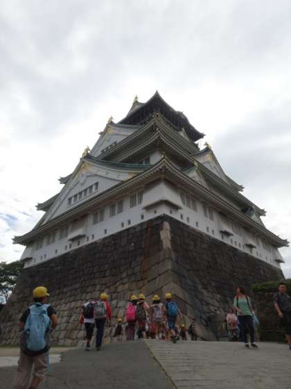 10月9日(木)暑すぎず過ごしやすい気候のもと、大阪城の天守閣に登ってきました。高いビルや公園の木々。遠くにはあべのハルカスまで見渡すことができました。西の丸庭園でお昼ごはんを食べ、芝生広場で楽しく遊びました。