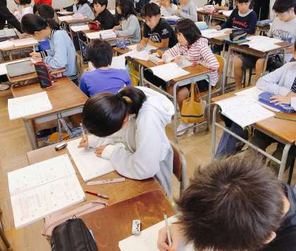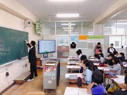 10月15日(火)5年1組で算数科「分数をもっとくわしく調べよう」の研究授業がありました。教職員の研修も兼ねたこの授業では、子どもたちと一緒に教職員も学びました。効果的な指導方法や、どのようにICTを活用するかなど多くのことを研修しました。その成果が、5年生の子どもたちの真剣な眼差しに表れていました。
