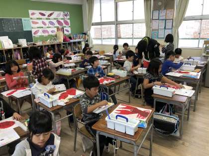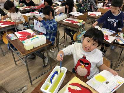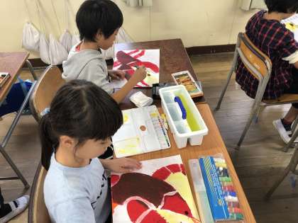 2年生は、11月の作品展に向けて、2年生で初めて習った水彩絵の具を使って「ザリガニ」の絵に挑戦します。今は、そのザリガニの絵の練習をしています。大きく描くことが難しかったり、色を薄く塗ることが難しかったりしますが、みんなとても真剣に取り組んでいます。ぜひ、でき上った作品を作品展で見てください!!
