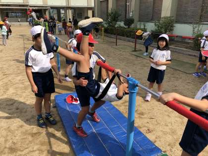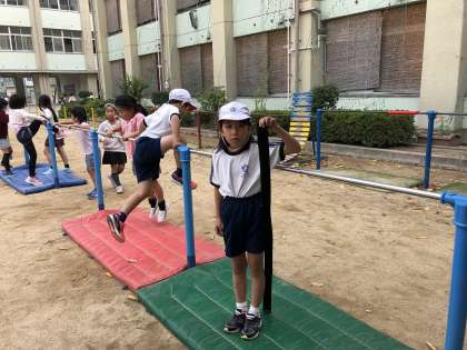 11月から、小学校でできるようになりたい運動ベスト3(逆上がり・25m完泳・跳び箱)の内の1つ逆上がりに取り組んでいます。逆上がり補助具『さかあがりでき〜る』を活用し、どんどんできた!が広がっています。